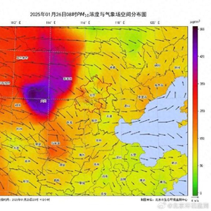 25-26日,受强冷空气活动影响,我国西北地区出现较大范围沙尘天气,沙尘主体偏西偏南,26日上午9时,沙尘带北部已经影响到内蒙中部-山西北部-河北北部区域,大同、张家口等城市PM10出现超过500微克/立方米的高浓度。沙尘预计上午开始影响北京市西北部,对我市的影响时间主要在白天,预计我市空气质量有短时达到中重度污染水平风险。由于西北风较大,沙尘移动较快,预计下午沙尘逐渐减弱,傍晚时段可移出我市,我市空气质量转优良水平。