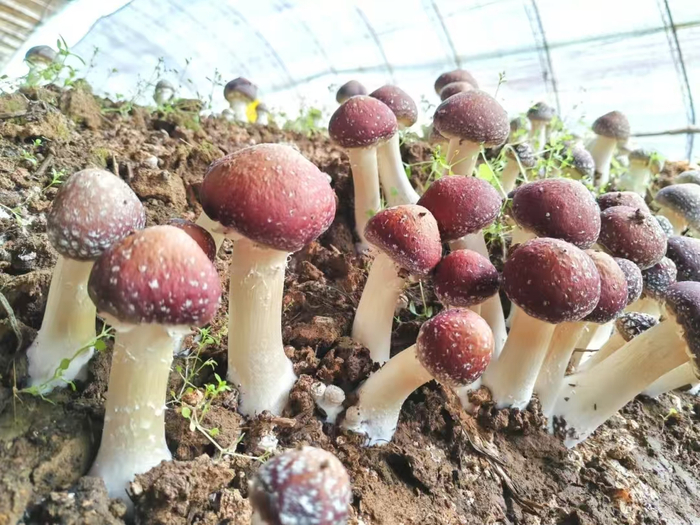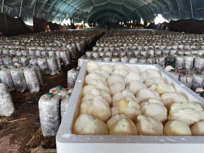 园区种植的食用菌品种有赤松茸(大球盖菇)、小白玉平菇、黑皮鸡枞、灵芝、栗蘑。供应期为1-12月。
