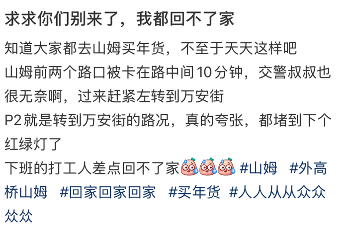 还有住在山姆附近的网友:“求求你们别来了,我都回不了家。”