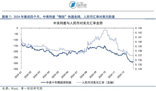 中美双方在通胀、货币政策上的分化最终将反映在中美利差的持续“倒挂”上,这也将成为2025年人民币对美元汇率调整的“压力源”。