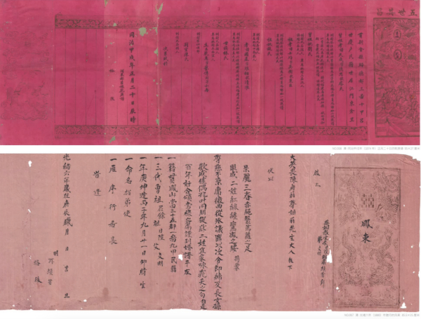新春的气息在空气中弥漫,百年婚书文化展与“百囍图”展览区域热闹非凡。布展团队精心收集的2400余份婚书整齐陈列,从清代的古朴庄重,到民初的新旧交融,再到当下的简约时尚,婚书的演变似一部无声的历史剧。