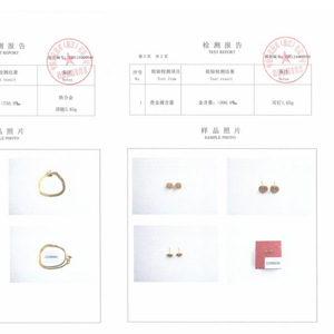 周大福18K金项链、周六福足金999黄金女耳钉的检测报告。
