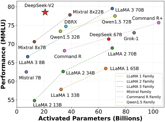 2024 年 5 月 6 日,DeepSeek 发布了 DeepSeek-V2 开源 MoE 模型,通过如 MLA(多头潜在注意力机制)和 MoE(混合专家模型)等创新架构,实现了性能与成本的双重突破。