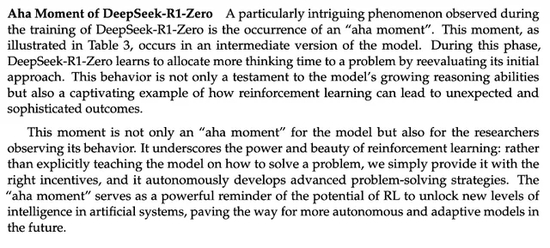 DeepSeek-R1 技术报告里提到一个值得关注的发现,那就是 R1 zero 训练过程里出现的‘aha moment(顿悟时刻)’。