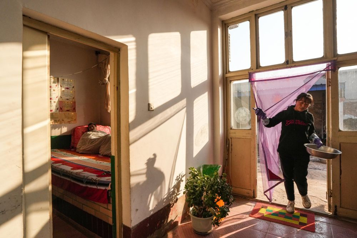 1月20日,回到家中,疲劳的孔令建(左)躺在炕上休息,妻子王艳青还在一旁忙碌。新华社记者陈晔华摄