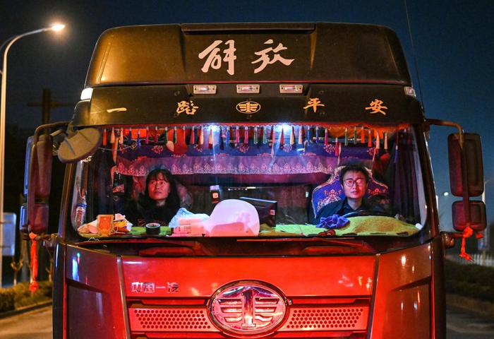 新春走基层·记者体验360行|1200公里!累并幸福着——新华社记者跟大货司机夫妇一起回家