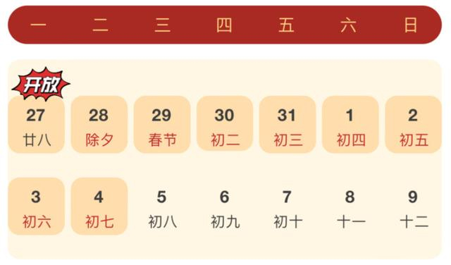 春节期间开放时间
