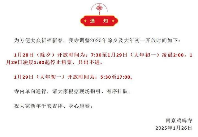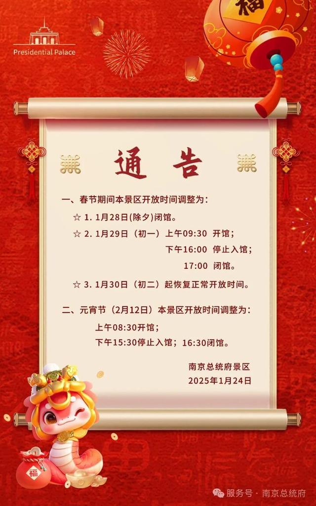 南京夫子庙、鸡鸣寺、总统府、牛首山……春节期间开放时间有调整