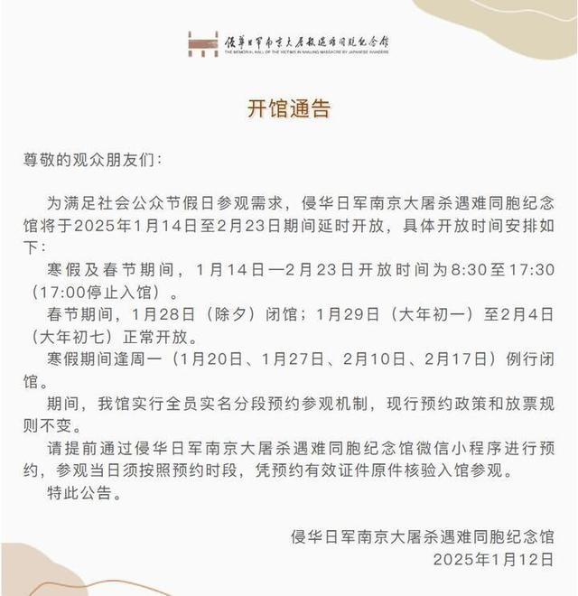 1月27日(周一)不闭馆正常开放。1月28日-2月4日正常开放。