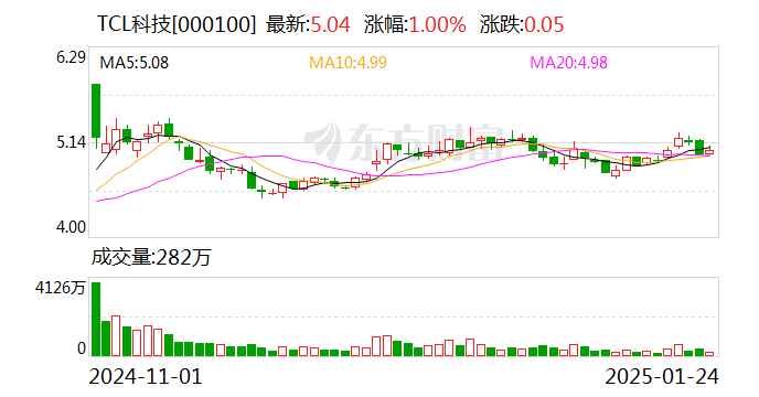 TCL科技:预计2024年净利15.3亿元-17.6亿元 同比下降20%-31%