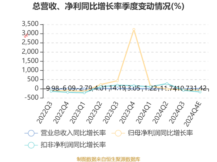 新能源光伏业务亏损,预计子公司TCL中环全年影响归属于本公司股东净利润-26.6亿元至-24.5亿元。全球光伏装机继续上涨,但产业链各环节产能集中释放,市场供需失衡,产品价格跌至现金成本以下。受产品价格下跌、存货跌价等影响,TCL中环2024年度出现较大亏损。2024年第四季度,光伏产业链主要产品价格逐步企稳回升,经营端已季度环比好转,公司有信心在2025年实现新能源业务经营业绩逐季度环比改善。(TCL中环业绩情况详见其发布的《2024年度业绩预告》)