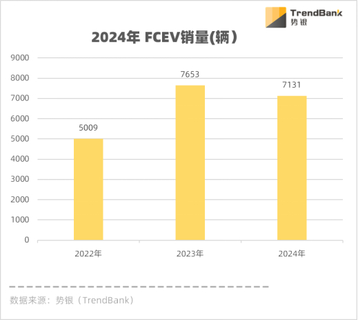 2024年燃料电池汽车上牌销量为7131辆,同比减少6.8%。