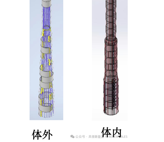预应力技术在混塔中的应用主要有体外预应力和体内预应力两种。各家的技术和生产特点略有不同。