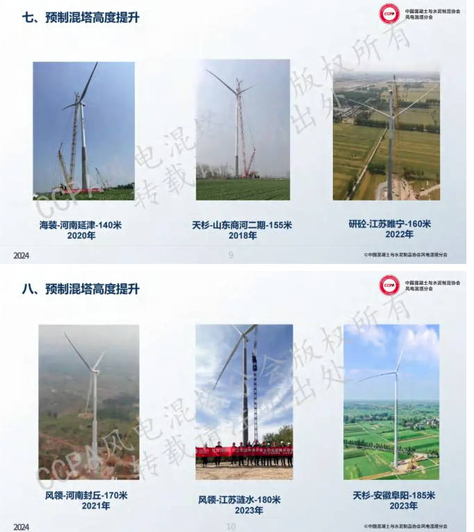 如上海风领新能源就在准备开发200米以上的超高UHPC混塔风机。天杉高科表示要追加204米钢混塔架新产品的生产线。