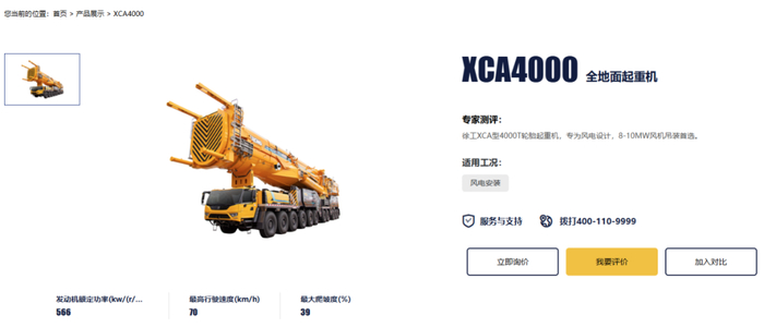 为此徐工集团动用了4000吨轮式起重机完成此次“全球第一吊”,根据其官网显示,该起重机专为风电设计,是8-10MW风机吊装首选。4000 吨的额定起重量,意味着它能吊起相当于两千多辆普通家用轿车的重量,能力与风险可想而知。