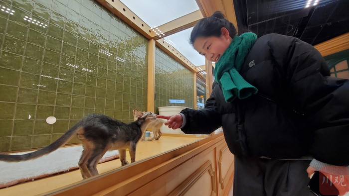 听说成都龙湖三千集帕帕拉兹宠物亚洲旗舰店“体验感”很好,李黎带着女儿来到这里,门口的橱窗是小猫等宠物生活的乐园。