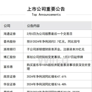 11、南京证券、华安证券发布业绩快报,双双实现净利同比增长。至此,已有30家券商公布2024年业绩概况,超八成业绩预喜。自营投资与财富经纪业务,成为诸多券商业绩增长的主要推动力,更有4家预计净利润超百亿元,分别是中信证券、国泰君安、招商证券以及银河证券。