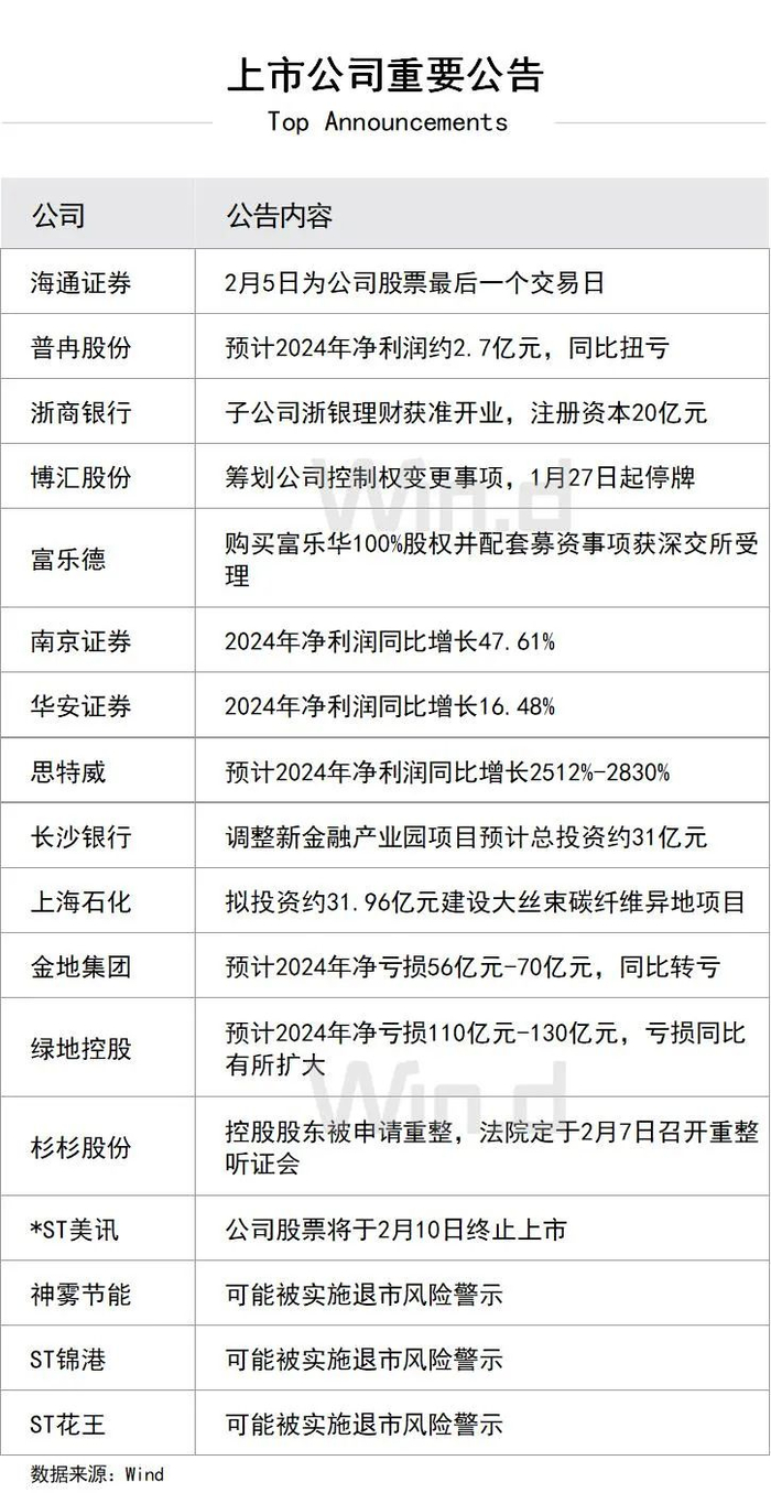 4、机构判断,A股经历1月调整后,2月可能是反弹波段,春季市场或是“有机会的震荡市”。投资布局方面,一季度看好红利、新兴产业技术进步、刺激内需政策链条三大投资主线,产业周期回升、基本面确定性更高的科技和制造也值得关注。