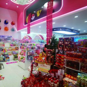 除了健康化,不少糖果产品还向创意化、娱乐化方向升级。在众彩市场A区糖玩商铺“俏品堂”内,手摇电话、小型自动贩卖机、投影手电筒等各式各样的新奇糖果玩具琳琅满目。手工艺术棒棒糖被设计成了熊猫、兔子、小狗等卡通形象,外壳上带有蝴蝶结包装,造型精美,店铺内还陈列了带有奥特曼、蜡笔小新、小马宝莉、皮卡丘等卡通IP的糖果专区,其中小马宝莉联名“糖玩”春节前销量已近1万件。