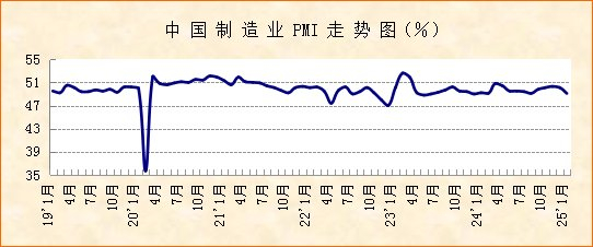 中国物流与采购联合会、国家统计局服务业调查中心发布的2025年1月份中国制造业采购经理指数(PMI)为49.1%,较上月下降1个百分点,显示经济运行短期有所波动。分项指数变化显示,受季节性因素影响,企业接单有所回落,生产活动短期有所放缓。但市场价格趋稳运行,企业资金压力有所缓解,制造业稳定运行基础牢固,企业对后市预期普遍乐观。预计一季度制造业将稳定向好运行。