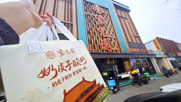“吃着酸奶进宫玩”!最近,一道“北京新特产”在社交媒体爆火!不是游客们来京必吃的烤鸭和铜锅涮肉,也不是凭猎奇出名的老北京小吃卤煮和豆汁儿,而是8元一杯的紫光园与“宫里的世界”联名的奶皮子酸奶,很多人一买就是6杯起步,小红书上甚至掀起了代购风潮。