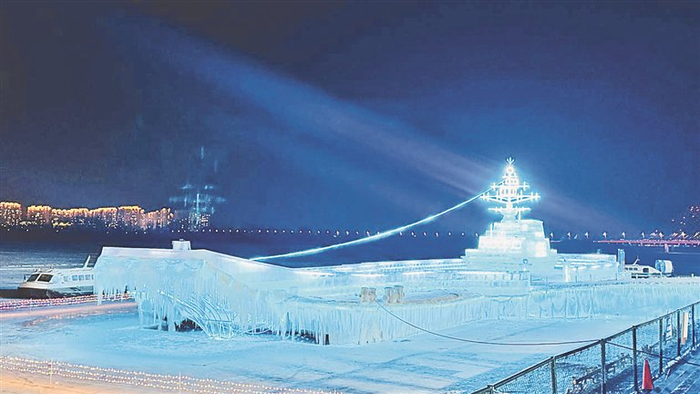 自我省冰雪季正式开启以来,黑龙江航运集团有限公司(以下简称航运集团)倾力打造的“百年航运·冰雪欢乐世界”项目获得了社会广泛关注。其中冰雪“辽宁舰”备受瞩目,2025年1月6日,冰雪“辽宁舰”正式揭牌,成为首发经济新IP。