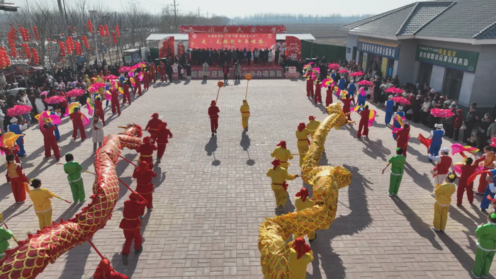 ■近日,在宁夏青铜峡市瞿靖镇毛桥村,身着五彩服装的表演者们舞动长龙,秧歌队的舞姿轻盈,川剧变脸和南营武术等节目轮番上演,赢得了观众的阵阵掌声。现场洋溢着浓厚的节日气氛。