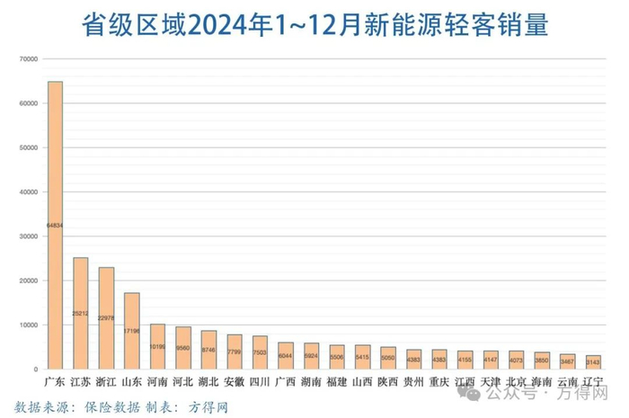 此外,全国31省份(自治区、直辖市)新能源轻客市场表现来看,广东新能源轻客销量近6.5万辆,占据市场份额26.5%;累计超2万辆的江苏、浙江排名二三位,排名第五的河南累销也超1万辆。