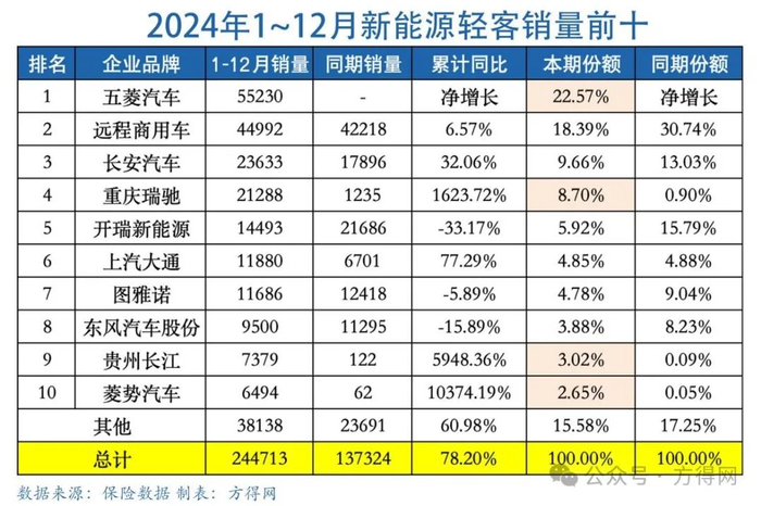 新能源轻客2024年销24.5万辆!五菱/远程争冠 长安/瑞驰火拼第三丨头条
