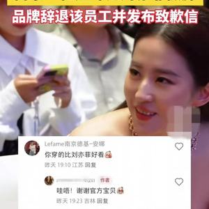 据多家媒体报道,事发后,有网友指出,该柜姐曾在评论区与网友互动时称赞网友“你穿的比刘亦菲好看”“其实刘亦菲有点微胖,所以你们穿也比她好看”,且均以“Lefame南京德基”的显著标识账号发文。