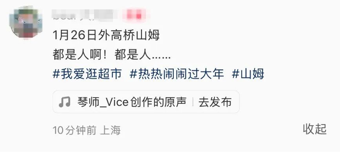 1月26日,工作日,上海的山姆会员店刚开门就人挤人。