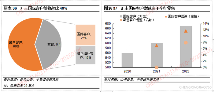 2)全球化经营使得汇丰在对跨境客户的服务上保持竞争力。我们认为汇丰在全球长期经营所积累的丰富经验和专业能力使其在应对有跨国金融服务需求的客户上具备优势。在对公业务方面,汇丰银行在交易银行和贸易融资方面的能力突出,据公司官网披露,汇丰银行对公业务覆盖175个国际市场和130多种货币,满足客户对于不同市场以及不同币种的需求。根据《欧洲货币》评选,汇丰银行是全球首席贸易融资银行,亦是第三大环球外汇交易行。截至2023年,汇丰银行对公板块中跨境业务贡献度达到61%。在零售业务方面,截至2023年,汇丰银行的国际零售客户数量达670万户,占全部零售客户的16%,而国际客户产生的收入贡献约占23年零售总收入的40%。