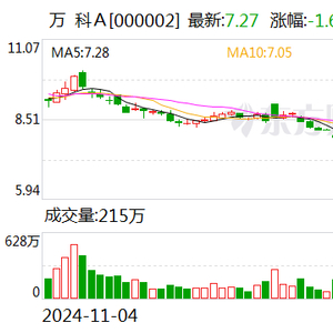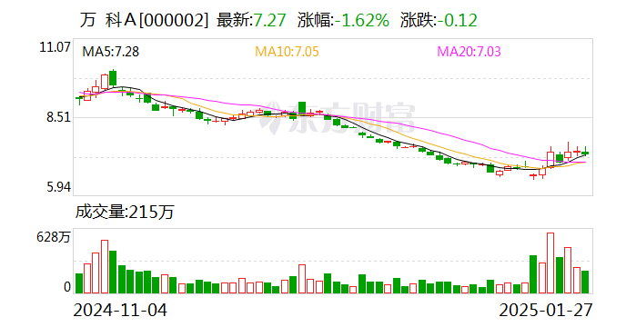 1月27日收盘,万科A股价报7.27元,市值为822亿元。