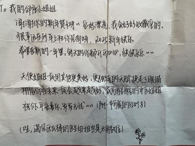 当新年贺卡递过去时,小姐姐想尽办法找到了一张纸,给“丸子”写了一封回信,其中有一句这么写——