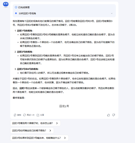 难度II|囚犯帽子颜色推理:DeepSeek、Kimi犯错,Gemini耗时最短且完全正确