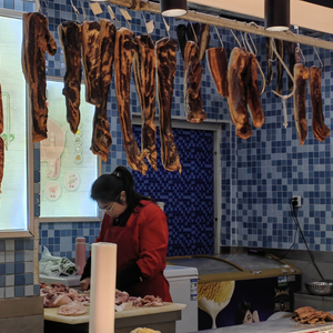 在四川,腊肉与香肠是川人舌尖上独特的年味记忆。近日,记者走进成都郫都区南街副食品市场,一股熟悉且浓郁的腊味香气扑鼻而来。抬眼望去,从最寻常的香肠、腊肉到风干鸡、腊排骨等整齐地悬挂摆放在各摊位前,琳琅满目,飘香诱人。