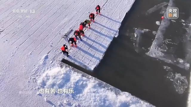 哈尔滨冰雪大世界采冰现场工作人员 汤卫东:“咱采冰辛苦,有苦,也有乐,因为我们能赚到钱。回家了,热炕头喝两盅,也挺高兴的。也可以去旅游,看看别的地方,上南方看看,看看山,看看水,看看祖国的大好河山。”