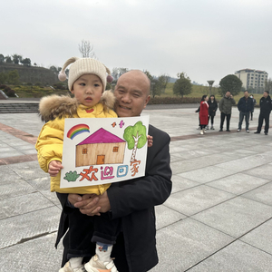 见到外孙拿着这幅画,用稚嫩语气喊道“欢迎回家”,邓康兵很高兴,脸上早已没了疲态,笑着抱起外孙拍照。