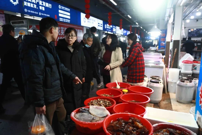 26日,记者来到宁波水产品批发市场,市场内人头攒动、熙熙攘攘,洋溢着浓浓的节日氛围。