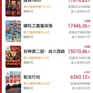 《哪吒之魔童闹海》《唐探1900》《封神第二部:战火西岐》也在预售中有不错的成绩。据灯塔专业版数据,《哪吒之魔童闹海》出品方有5家,光线传媒(300251.SZ)主投;《封神第二部:战火西岐》的出品方有7家,包括北京文化(000802.SZ)、阿里影业(01060.HK);《唐探1900》的出品方有6家,包括万达电影、中国电影、上海儒意影视等。