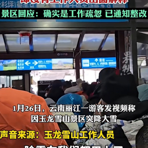 1月26日,云南丽江一游客发布视频称,因玉龙雪山景区突降大雪,几千人被堵在冰川索道乘车点,楼梯口、乘车通道挤满了人,却没有工作人员出面解释。