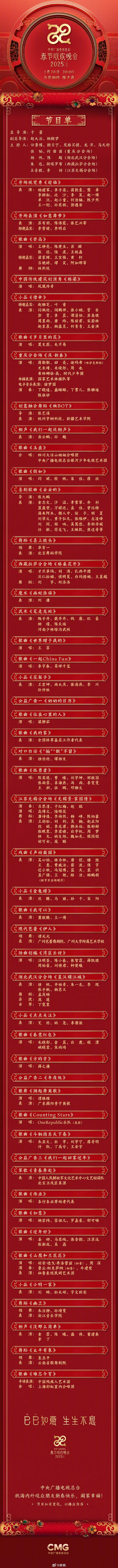 官宣!中央广播电视总台《2025年春节联欢晚会》节目单发布!