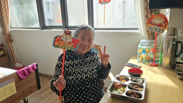 在华阳敬老院,喜庆的灯笼高高挂起,蛇年彩带萦绕在各个角落。贴窗花、写“福”字,院内喜气洋洋。凑近一看,“2025年福气满满”“福寿双全”……每一盏灯笼都饱含着长者对新年的展望。敬老院还精心烹饪了丰盛可口的年夜饭,烤麸、熏鱼糖醋小排……不少地道本帮美食让长者们大快朵颐。