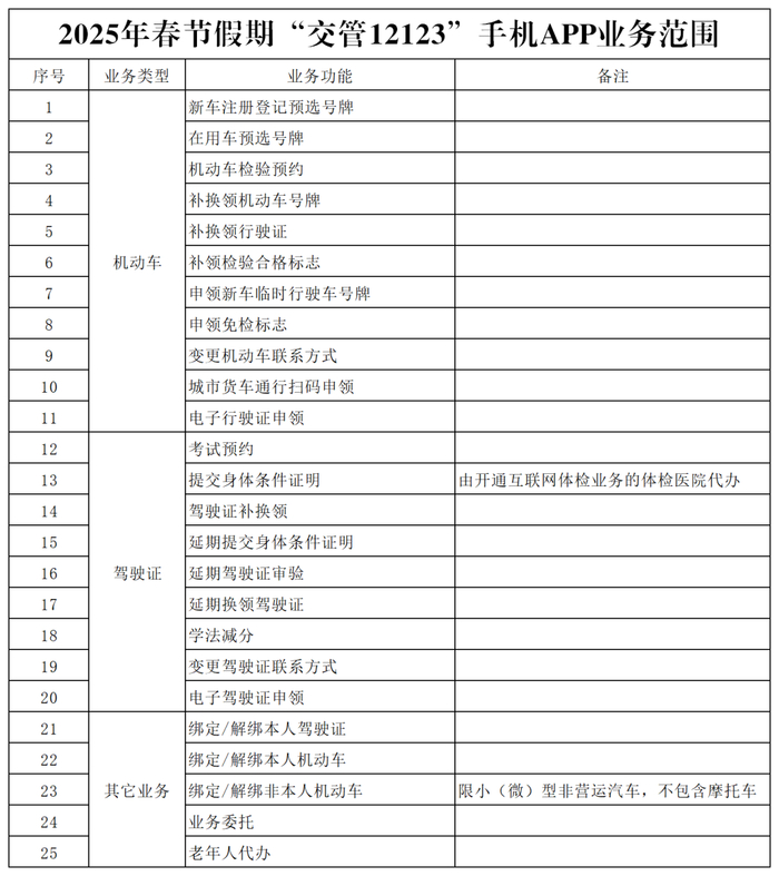 2.2025年春节假期“交管12123”手机APP业务范围表