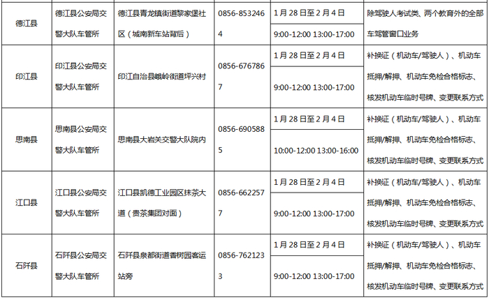 四、黔南州2025年春节假期车管窗口服务一览表