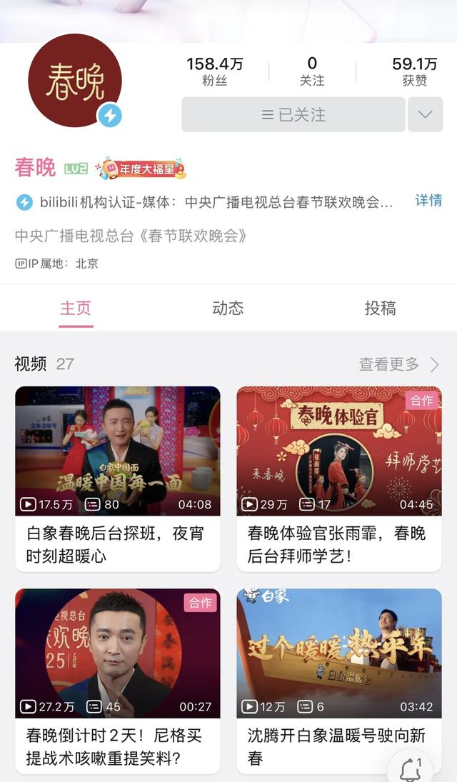 此外,B站开设了春晚官方账号,上线了1983年至今过往42年的中央广播电视总台春晚节目。目前,官方账号已经收获超过150万粉丝,2024年春晚也已经收获超过622万播放量。