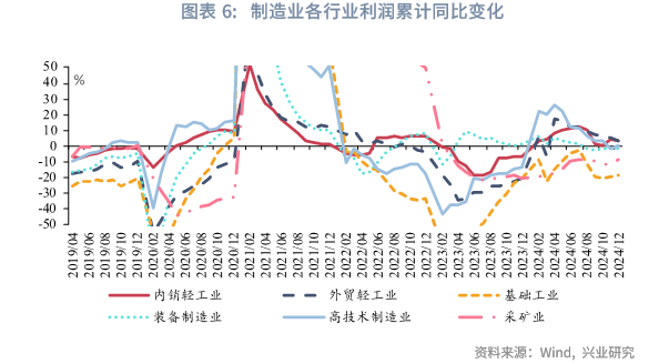 从大类行业来看,12月采矿业、基础工业和高技术制造业利润累计同比回升幅度较大,分别较上月提高3.02、1.66和1.45个百分点[1]。