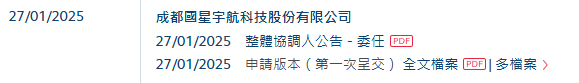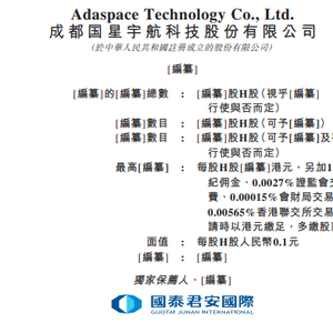 2025年1月27日,来自四川成都的成都国星宇航科技股份有限公司Adaspace Technology Co.,Ltd (以下简称“国星宇航”),向港交所递交招股书,拟香港主板上市。