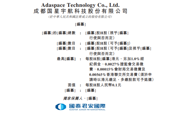 国星宇航,来自四川成都,递交IPO招股书,拟赴香港上市,国泰君安国际独家保荐