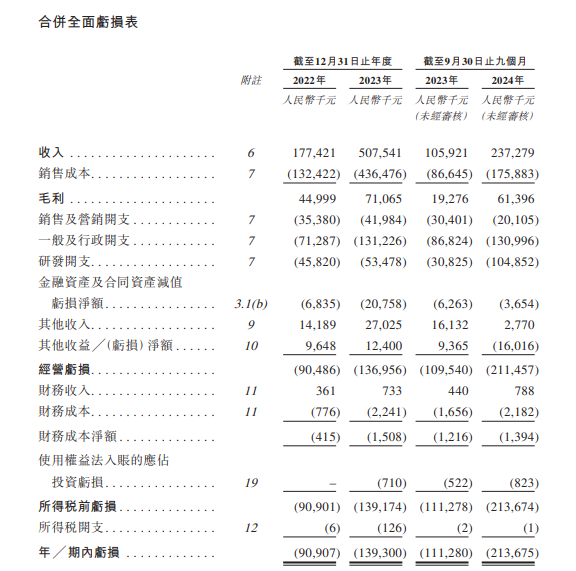 招股书显示,在过去的2022年、2023年和2024年前九个月,国星宇航的营业收入分别为人民币1.77亿、5.08亿和 2.37亿元,相应的净亏损分别为人民币0.91亿、1.39亿和 2.14亿元。